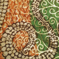 Nous avons choisie un tissu orange/vert/marron/doré dans un magasin de tissu africain wax! Et nous essayons de l'intégrer aux différents éléments du mariage comme sur le faire part, sur le porte...