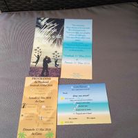 Bonsoir à vous la communauté... Ca y'est les faire parts sont finis, ainsi que le programme du weekend et la carte réponse.... recto verso programme carte réponse
