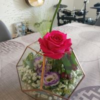 Bonjour, Complètement novice en matière de composition florale, j'ai fait mon premier essai de centre de table aujourd'hui. Je me marie en septembre donc les fleurs ne seront pas les même mais ça...