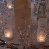 Cc a toutes, j'aimerai mettre sur les tables ce genre de photophore mais a la place de mettre le menu y mettre des citations sur le mariage. Qu'en pensez vous? Je vous met des exemples.