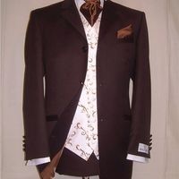 Chéri a enfin trouver son costume. Voilà des mois que l'on veut du marron parmis tous ces costumes bleu en magasin Grrrrr !!!!! La veste, le pantalon, la lavallière et la pochette sont identique à la...