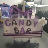 Centre de table invitésMes pots pour le Candy Bar Mes pots sont redécorés à la mains !! Ne regarder le fond, c'est un vrai bordel avec le mariage qui approche. et on ne parle pas de la Bière
