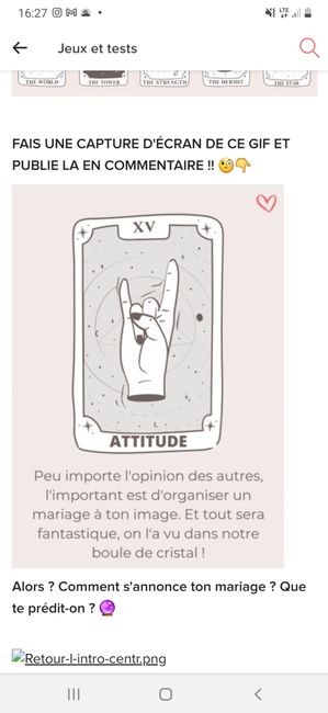 133Coucou tout le monde 💜 Merci d'avoir participé jusqu'au bout ! Maintenant qu'on en sait un peu plus sur ton mariage, on va pouvoir tirer les cartes... FAIS UNE CAPTURE D'ÉCRAN DE CE GIF ET PUBLIE LA...