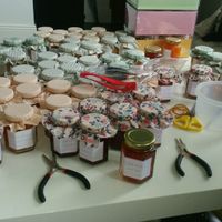 Après midi studieuse avec chéri à décorer nos petits pots de confitures. Ça y est ils sont prêts !Nous avons donc :- Mandarines au sucre de canne- Mûres à la vanille - Pommes / Poires - Banane au rhum...