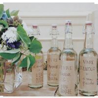 Je me penche ce matin sur le détail qui tue, vu sur les albums de ma photographe: les bouteilles d'eau cristalline au milieu d'une décoration de rêve. Je suis donc en train de chercher une solution...