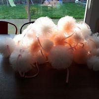 Aujourd hui on continu intensivement les diy par les pompons pour décorer la table enfant Et surtout avec une super assistante... ma fille de 6 ans... elle fait les petits pompons je fais les gros......