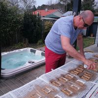 Rentres hier de voyage in ne se laisse pas alker à la nostalgie des vacances et on fabrique le tipi... Bien sur c est une ébauche et il sera fleuri