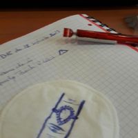 Coucou les filles... 'aujourd'hui ma créatrice m a envoyé deux photos d échantillons de dentelle pour la cape de ma robe..... Laquelle préférez vous. En arrière plan vous apercevez les croquis