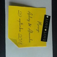Bonjour, Nous avons décidé de changer nos faire part juste avant de les envoyer les autres était trop classique! Voilà une ébauche des nouveaux il reste plusieurs chose à finaliser mais on y est...