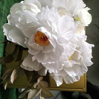 Bonjour Mon mariage est le 31/12 donc les fleurs fraîches c'est pas une bonne option pour moi. Voici mon idee pour la décoration des tables un mixte de fleurs en papier, avec du gypsophile, eucalyptus...