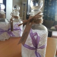 Bonjour! Aujourd'hui, costumisation de petites bouteilles trouvées chez action! Un peu de dentelle, des rubans, de la corde et surtout mon ami le pistolet a colle!.