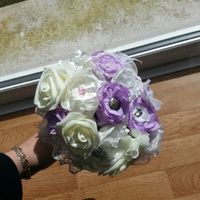Bonjour!! Ce week end j ai travaillé dur poir faire les fleurs en tissus pour mon bouquet. Je ne l ai pas encore terminé j ai encore quelque fleurs a faire et la poignée. Qu en pensez vous ? Merci...