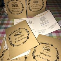 Enfin fini, hâte de les donner. J’offre à mes témoins, filles et garçons d’honneur ce guide plus un carnet à noter leur idées, des bracelets pour les filles et noeud pape en bois pour les hommes....