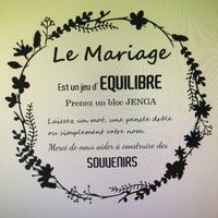 Bonjour, pour mon mariage je fait un bar à tatouage et en livret d’or j’aime beaucoup les jenga. J’ai fait les deux affiche que je vais imprimer et mettre dans un cadre, j’ai repris symbole du tampon...