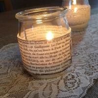 Hello les filles!! Cet aprem c'est atelier déco. Notre thème c'est l hiver donc voilà mes photophores. Pour moi en hiver on bouquine au coin du feu... ( Ça va c'est pas trop tordu????) J adore l effet...
