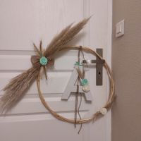 Cc la commu J'ai fait une déco avec cerceaux et nos initiales J'ai besoin d avis concernant la ficelle ça choque pas ? Sinon j ai pensé mettre du fil de pêche ? Qu en pensez vous ? Merci pour vos avis...