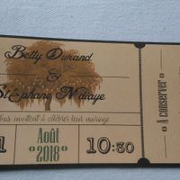 Bonjour, allez après plusieurs retouches on est décidé, voici notre création de faire-part... nous rajouterons un petit ticket " infos réservation" pour les enfants, le couchage, le retour,... de la...