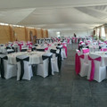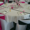 Voilà tout est dans le titre...nappes et housses de chaises noires ça vous choc? Mes couleurs sont noir fuschia et argent... Je vous une photo d'une décoration trouvé sur le net et celle de notre...