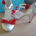 Hello les filles! Voilà mes chaussures que j'ai personnalisé sur mon thème campagne chic avec touche de rouge. Comment vous trouvez? Et il me semble qu'il faudrait une touche sur le devant de la...