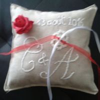 Voilà! J'ai terminé mon coussin pour nos alliances cheries! La broderie c'est ma mamie qui me l'a faite, je lui fais un gros bisous!