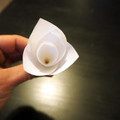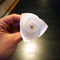 Coucou, Comme vous me l'avez demandé, voici le tuto de mes fleurs blanches Il vous faut 20 pétales comme ceux ci : Avec le premier pétale, enroulez le sur lui même afin de faire le cœur (photo du...
