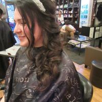 ... Après mes essais coiffures! J'ai les cheveux fins et plats et la coiffeuse m'a fait une tresse signe de Raiponce ,j'ai de tous petits yeux et cette fois j'ai eu un maquillage qui me les agrandis !...