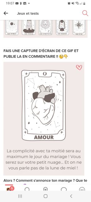 Coucou tout le monde 💜 Merci d'avoir participé jusqu'au bout ! Maintenant qu'on en sait un peu plus sur ton mariage, on va pouvoir tirer les cartes... FAIS UNE CAPTURE D'ÉCRAN DE CE GIF ET PUBLIE LA EN COMMENTAIRE !! 🧐👇 Alors ? Comment s'annonce ton...