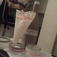 Notre thème est champetre avec des touches de camargues... On commence à sécher un peu sur les idées! Thème couleurs, rose pâle peche et blanc. Matériaux : dentelle, verre, bois, Kraft ect
