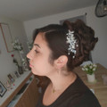 Et me revoilà, voilà la coiffure que j'ai retenu, une chignon mi haut pour aller avec le col de ma robe (oui finalement je garde mon premier choix , tant pis pour les critiques)