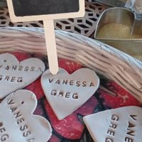 Bonjour à tous, Cet après-midi j'ai tenté l'argile bah c'est plutôt plaisant à faire, avec les prénoms pour la table des adultes, les petits cœurs c'est mon fils de 9 ans qui a fait pour la table des...