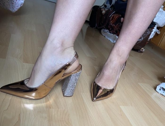 Voici les chaussures que j'ai choisis ! Elles sont confortables, juste devant ou le pieds est un peu serré. J'ai pris une taille de plus pour pouvoir mettre des semelles confort en plus dedans. Elles font 7cm de haut.