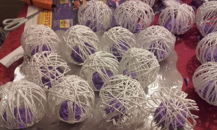 Aujourd'hui aprem déco chez ma belle mère on a attaqué une partie de la déco de la table d'honneur . Pour les boules avec les plumes tout simple ma belle mere à acheté des boules violettes ou l'on a...