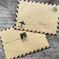 Bonjour à toutes et à tous, Je vous présente mes faire-part réalisés par mes soins. On retrouve une enveloppe vintage type « air mail ». L’enveloppe est fermée avec un autocollant reproduisant les...