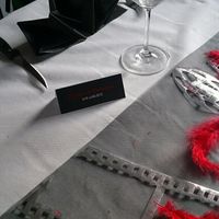Voilà on a essayé notre déco de table après réception des chemins de table. Il manque quelques diamants avec les plumes sur le chemin et bien sûr le centre de table, qu'en pensez-vous ???