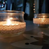 Je teste mes premiers pots 😊 pour le moment juste un peu de dentelle et je viens de commander de la ficelle pour rajouter autour ! j'hésite entre bougies ou led vous en pensez quoi ?