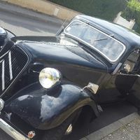 Nous avons choisi de louer une voiture de 1948, un Citroën traction. Voiture de l'année de naissance de mon père ! ^^... Nous avions contacte un club de collectionneur de la région. Et un jeune père...