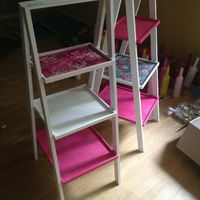 Voila, nous avions commencer il y a une semaine a peindre en blanc, faire les plateaux decopatch, et hier on a fait les parties plateaux fushia..Je suis contente du résultat !! C'est pour ouvrir...
