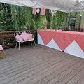 Coucou, je poste une idée d'une décoration pour mon vin d'honneur, il se passera en extérieur si tout va bien, sous un platane avec des branches basses que je pensais décorer avec des boules de fleurs...