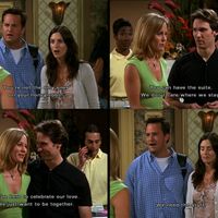 Lors de leur voyage de noces, Chandler et Monica sont partout précédés par un autre couple qui leur "vole" tous les avantages des jeunes mariées ;-) Pensez-vous profiter de votre statut de "just...