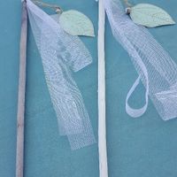 Bonjour, Voici les bâtons que je prépare pour la sortie de la mairie. C'est du tulle blanc, avec une feuille métallique vert d'eau, une clochette, fixés sur un bâton en bois ou en bambou. Qu'en...