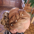Voilà cet après midi 2eme essai coiffure et je suis ravie 😊 mechés blondes et chocolat prévue avant le jour J car là ma couleur de cheveux ça ne va pas du tout lol Qu'en pensez vous ?