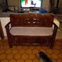 Voilà avec quoi mon homme est rentré du travail. Je suis trop contente notre joli banc pour le photobooth Peut être je vais le repeindre vous en pensez quoi ? Je l'aime mon homme a moi ❤️