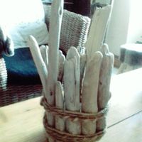 Photos de quelques photophores que j'ai réalisés avec du bois flotté. Je trouve que l'ensemble est assez "grossier", voire mastoc. Merci de me donner vos avis... Vue de face Vue du dessus