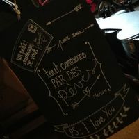 Dans un coin vers le photomaton , l'urne pour les mots doux et les p'tits sois Urne :boîte aux lettres récupérée Portes cartes :vieux livre plié Ardoise :fond de meuble découpé/peint/décoré Plus un...