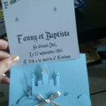 Mes 60 faire part sont terminés enfin presque reste l'étiquette qui sera collé derriere avec nos noms prenom adresse et numero Je suis bien contente hihi