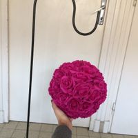 Bonjour, suite à mon dernier post, où j'expliquais ce que je voulais faire avec des boules de fleurs, à l'entrée de ma salle, mais où il me manquait le ruban pour accrocher la boule au piquet.... Et...