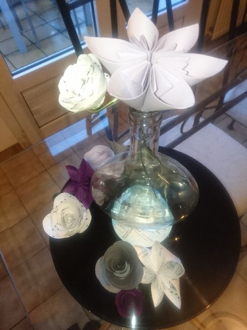 Des ptites fleurs en papiers🌸, 1parties sera collées sur des 33tours pour nos centres de tables,et les autres pour nos bouquets.