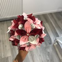 Je voulais faire le traditionnel lancé du bouquet de la mariée mais j’avais envie d’un bouquet qui se garde alors voilà le résultat