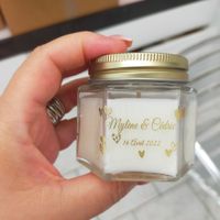 Activités du jour. Étiquette bougies pour cadeau invités vdh et repas. Je pense mettre un ruban de dentelle et un bouquet de fleurs séchées autour du couvercle mais qq jours avant le mariage