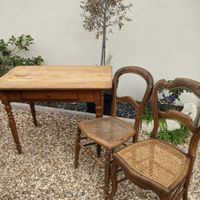 Coucou ☺️ Je partage avec vous nos premières trouvailles d'occasion. Un bureau qui nous servira pour poser le livre d or, l urne et des deco et nos chaises pour la cérémonie laïque 😍 plus qu a les retravailler un peu.Elles seront agrémentées de fleurs, dans cet esprit